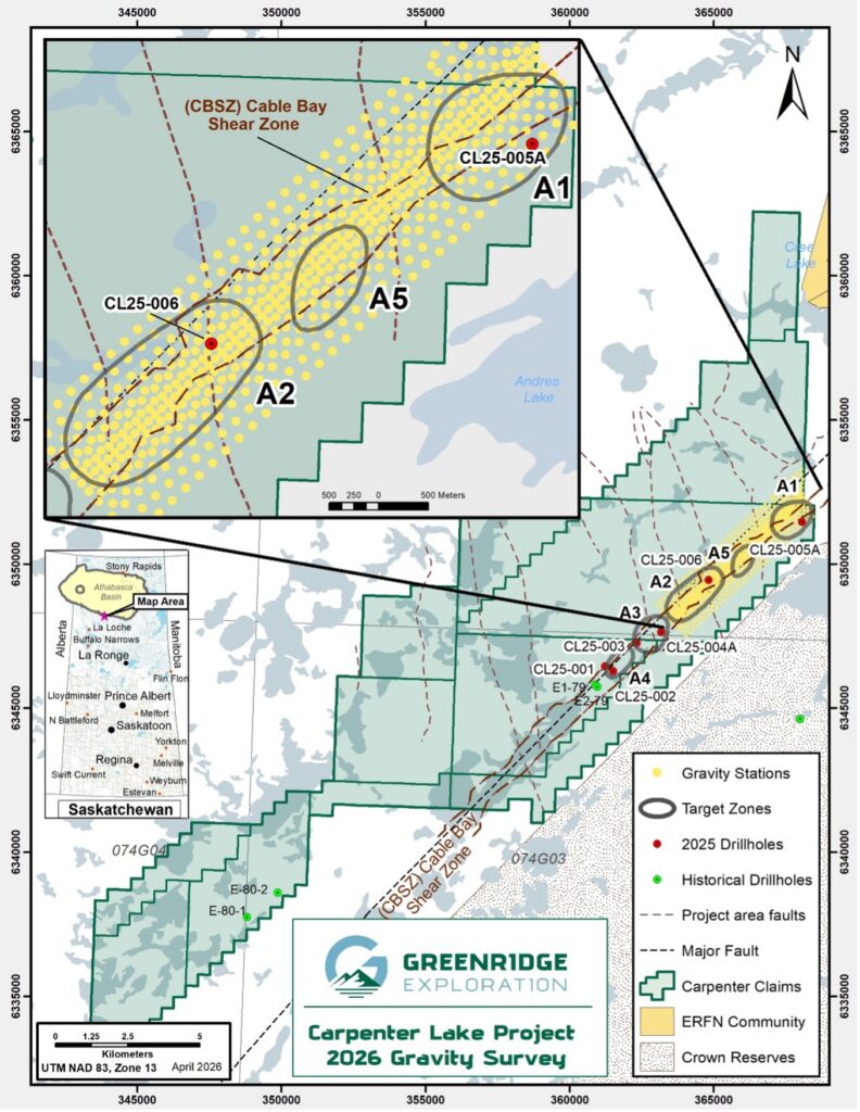 Greenridge Exploration Initiates Ground Gravity Survey at the Carpenter Lake Uranium Project, Athabasca Basin Area